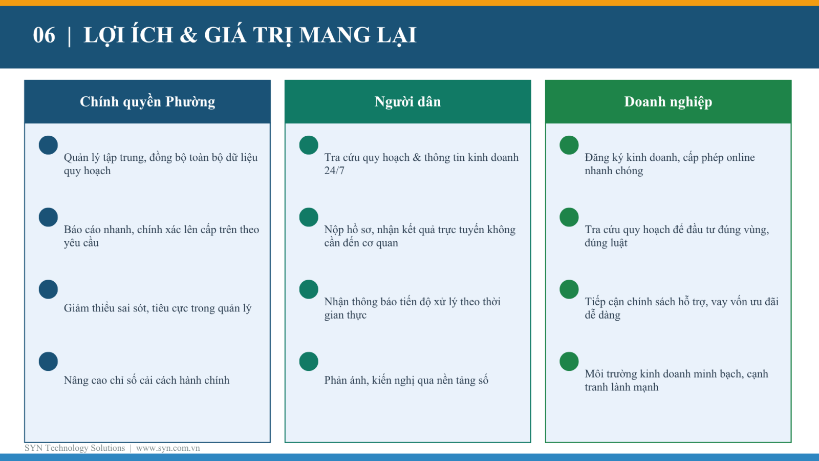 Giải pháp CĐS Quy hoạch & Kinh tế Phường | SYN Marketplace